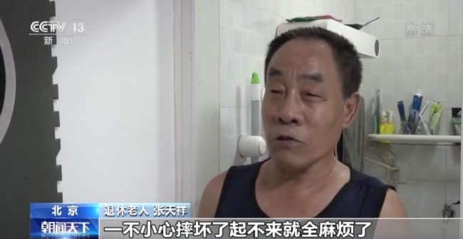 退休老人张天祥:“我觉得我还是需要这个设施,岁数大了,一不小心摔坏了起不来就全麻烦了。”
