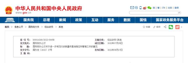 行政裁量权基准是行政机关结合本地区本部门行政管理实际,按照裁量涉及的不同事实和情节,对法律、法规、规章中的原则性规定或者具有一定弹性的执法权限、裁量幅度等内容进行细化量化,以特定形式向社会公布并施行的具体执法尺度和标准。规范行政裁量权基准制定和管理,对保障法律、法规、规章有效实施,规范行政执法行为,维护社会公平正义具有重要意义。近年来,各地区各部门不断加强制度建设,细化量化行政裁量权基准,执法能力和水平有了较大提高,但仍存在行政裁量权基准制定主体不明确、制定程序不规范、裁量幅度不合理等问题,导致行政执法该严不严、该宽不宽、畸轻畸重、类案不同罚等现象时有发生。为建立健全行政裁量权基准制度,规范行使行政裁量权,更好保护市场主体和人民群众合法权益,切实维护公平竞争市场秩序,稳定市场预期,经国务院同意,现提出以下意见。