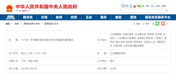 关于进一步完善和落实积极生育支持措施的指导意见