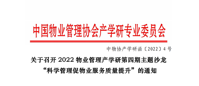 为深入探讨通过物业设施设备低碳运行的科学管理手段促进物业服务质量提升,经研究,定于8月25日召开2022物业管理产学研第四期线上主题沙龙“科学管理促物业服务质量提升”,具体安排通知如下: