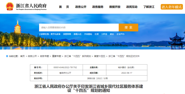 浙江省城乡现代社区服务体系建设“十四五”规划