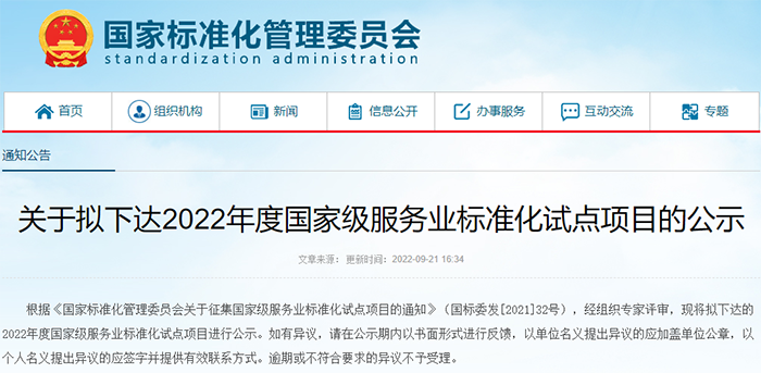 近日,国家标准化管理委员会发布《关于拟下达2022年度国家级服务业标准化试点项目的公示》,根据《国家标准化管理委员会关于征集国家级服务业标准化试点项目的通知》,经组织专家评审,将拟下达的2022年度国家级服务业标准化试点项目进行公示,其中多家物业服务标准化试点项目名列其中。