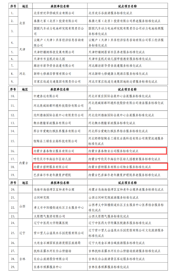 以下为拟下达2022年度国家级服务业标准化试点项目汇总表