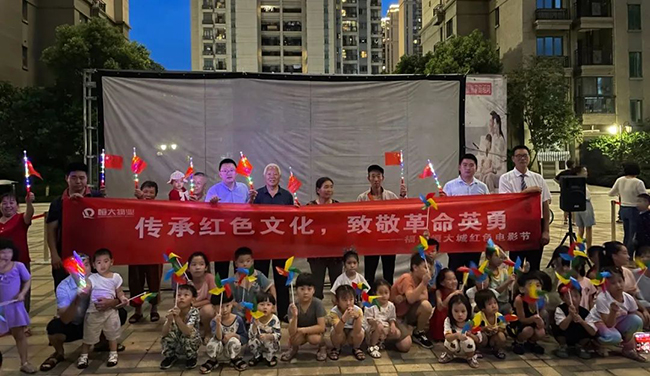 在福清恒大城,八月一日的夜晚,业主们纷纷围坐在小区的广场上,观看电影《建军大业》。电影确实有足够的吸引力让大家一起了解那段峥嵘的历史,也能够促进邻里和谐的关系。项目负责人说。红色电影节是今年恒大物业品牌建设工作的重点推进项目,旨在通过业主喜闻乐见的方式将红色精神、爱国主义精神在社区传播。
