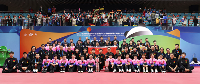 第56届国际乒联世界乒乓球团体锦标赛在四川成都如约举行,历时10天,国乒包揽成都世乒赛男女团冠军,分别取得女团五连冠、男团十连冠的优异成绩。