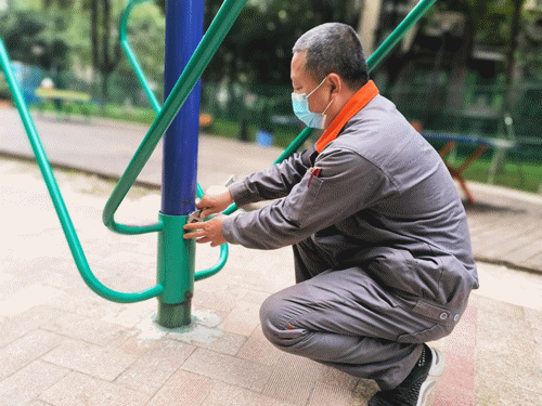 一旦发现健身器材出现问题立即向工程员们报事报修。小到一颗螺丝钉,大到保障业主们的日常生活,他们常工作到深夜甚至通宵,保证第一时间排除安全隐患,为业主家人的安全保驾护航。
