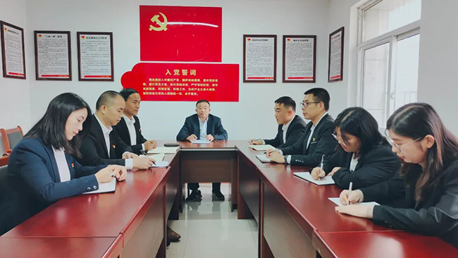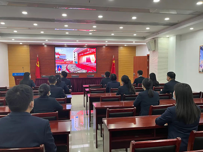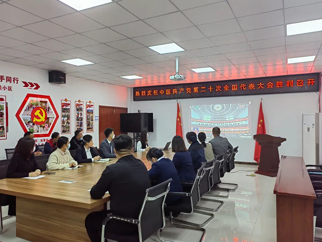开幕会结束后,金房物业第一党支部立即组织公司领导层和办公室人员集中学习二十大报告。