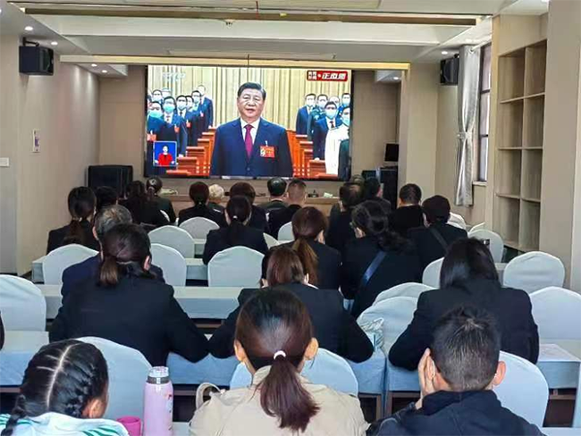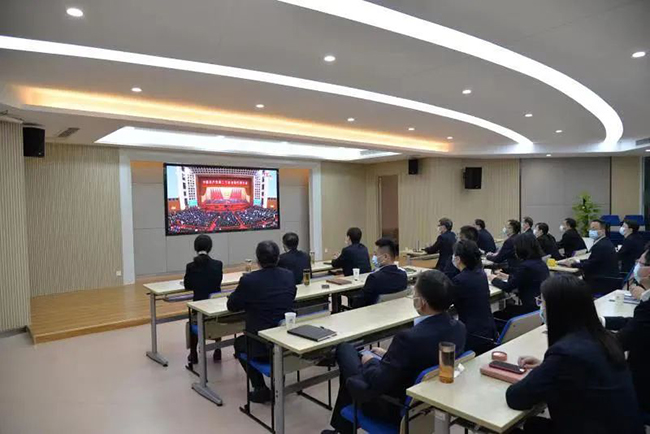 安徽通服置业公司组织党员、职工集中收看开幕会。