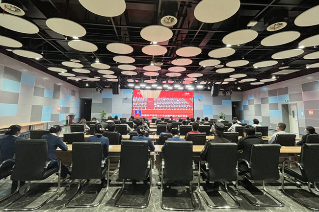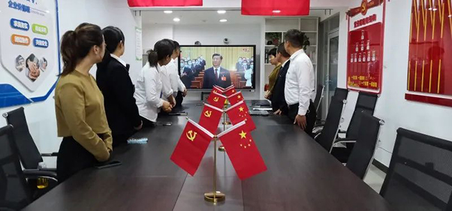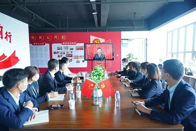 美而特集团党支部、团支部、工会、妇联在总部联合组织党员、入党积极分子、骨干员工和团员青年,集中收看党的二十大开幕会。
