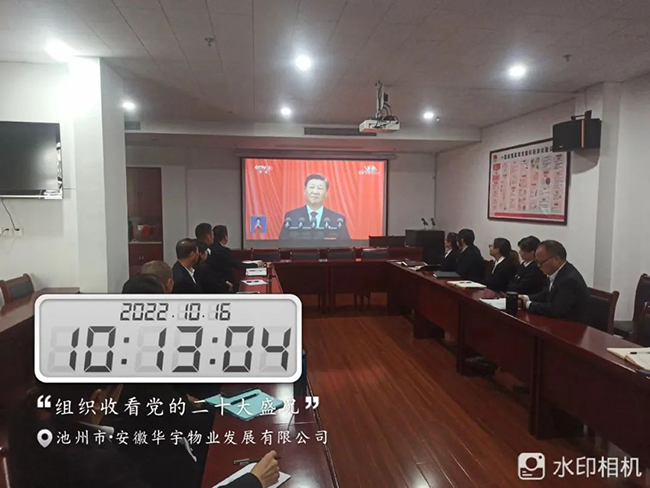 池州市物协、安徽华宇物业组织领导、党员集中收看开幕会。