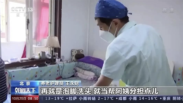 今年51岁的王永财,2019年从黑龙江农村来到北京,经过专业培训之后在一家养老院工作,现在每月收入7000—8000块钱。王永财说,干这行不仅得有劲儿,也得细致;不仅需要专业技术,还需要人文关怀,让老人能够在生理和心理上都得到康复。