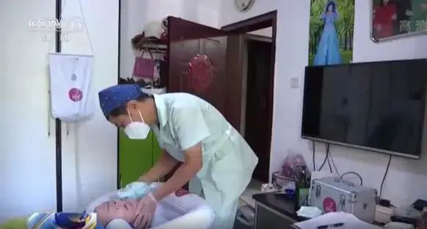 陈富景的妻子说,由于不知道如何操作,丈夫瘫痪后一直没有好好洗过澡,直到养老护理员王永财带着专业的设备上门,才真正解决了丈夫的洗澡问题。王永财在照护陈富景的同时,还教会了孟女士一些照护技能。