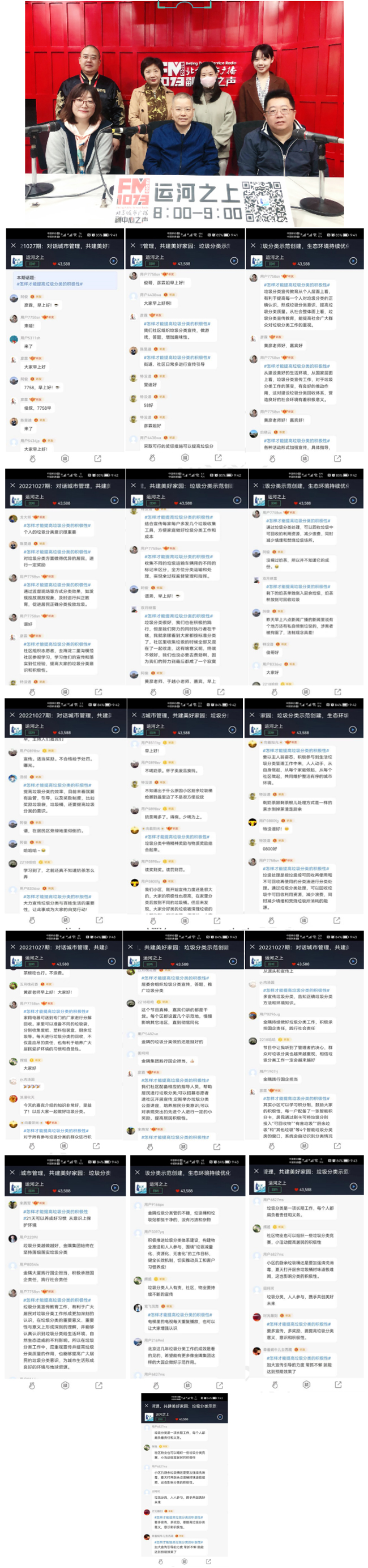 节目进行中共有502人次进入直播间,针对本期话题节目进行互动。其中,大部分互动听众都是非常支持垃圾分类工作的,并在节目互动中对如何做好垃圾分类工作分享了自己的看法,大家普遍认为,对提高垃圾分类的效率,要有监管、引导以及奖励制度,还有要提高垃圾分类的意识等。