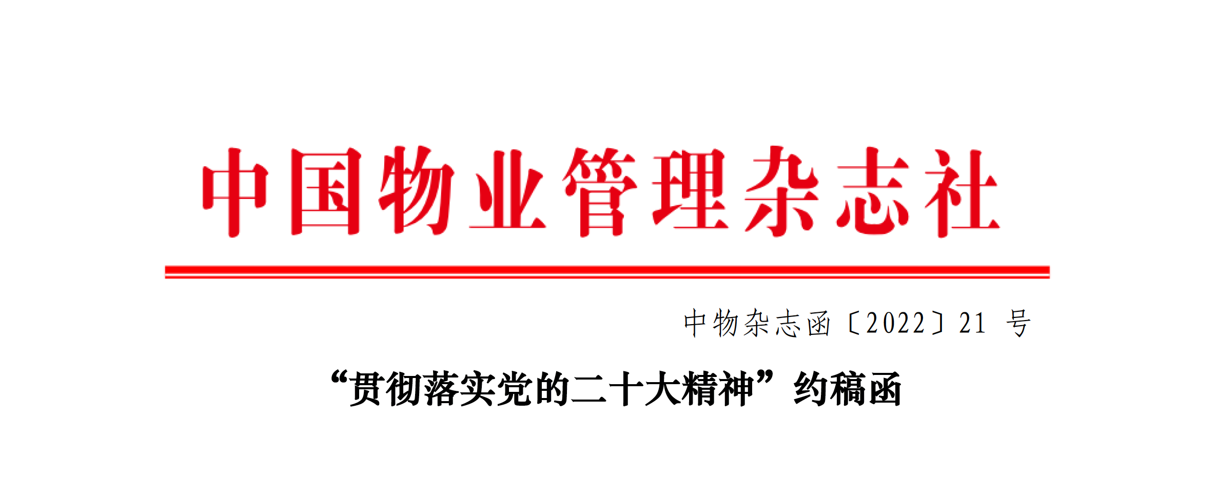 1030日,中共中央发出《关于认真学习宣传贯彻党的二十大精神的决定》,要求“精心策划、集中报道,大力宣传党的二十大精神,宣传全党全社会对党的二十大的热烈反响和积极评价,宣传各地区各部门学习贯彻党的二十大精神的具体举措和实际行动。”为落实这一要求,本期《聚焦》栏目特别推出“贯彻落实党的二十大精神”专题,重点讨论当前物业管理行业如何以党的二十大精神为指引,践行新思想,谋划新作为,凝聚起同心共筑中国梦的磅礴力量。