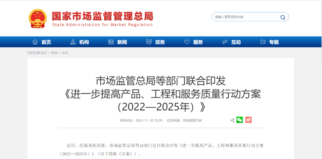 近日,经国务院同意,市场监管总局等18部门近日联合印发《进一步提高产品、工程和服务质量行动方案(2022—2025年)》(以下简称《方案》)。