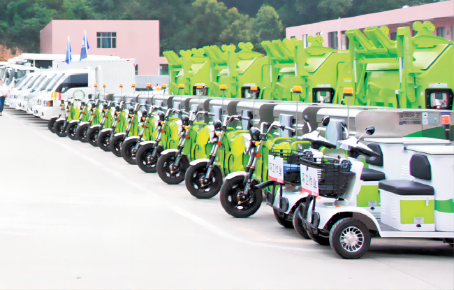 深业运营“物业城市”项目全面推行“人机结合”,以机械化作业,提升服务质量。从原来的传统“大扫帚”作业模式逐渐过渡到以机械为主、人工保洁为辅的作业模式。目前,虽大部分城市主干道基本实现机械化作业,但城中村、背街小巷等区域的机械化覆盖率较低。为此,深业“城市管家”率先推广自主研发的小型机械设备替代人工,进一步提升城中村、背街小巷、人行道等场所的机械化作业覆盖率,逐步形成“人工+小型扫地车+环卫巡查车+高压冲洗车”等机械设备协同的高效作业。