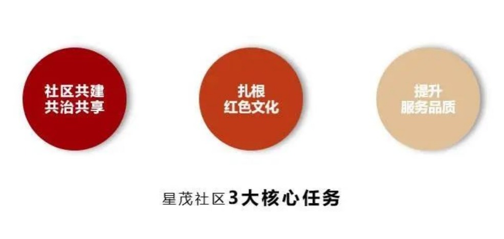 作为世茂服务全新推出的红色物业品牌,“星茂社区”将基层党建工作与服务深度融合,通过1个核心,即以党建引领为核;3大红色工程,即一岗一队、二点一线、一站一日;5心领航,即守初心、暖民心、凝人心、筑同心、秉臻心,致力打通党组织联系服务群众“最后一公里”,激活社区基层“红色细胞”, 发挥党员先锋模范作用,使“红色物业”真正发挥服务群众、服务社区的重要作用,促进服务精细化治理和专业水平的有效提升,从而打造出美好社区,提升业主归属感、加强业主信念感、满足业主幸福感。