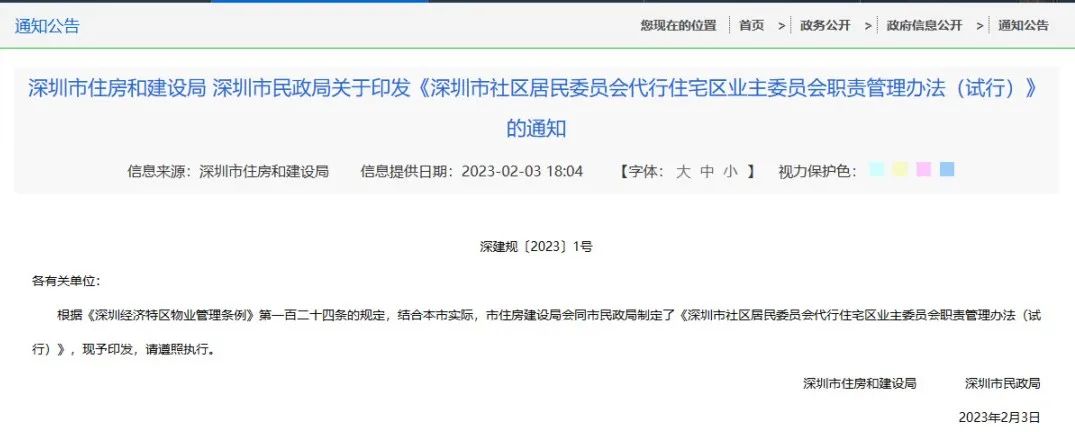 深圳市住建局、深圳市民政局近日印发《深圳市社区居民委员会代行住宅区业主委员会职责管理办法(试行)》(以下简称《管理办法》)。《管理办法》明确了无业委会的小区可由居委会代行业委会的相关职责,意在解决部分小区存在业主委员会“成立难”“换届难”问题。