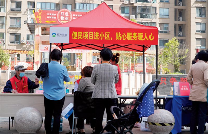 扬州市天俊华府小区设立红色便民服务处,为业主免费提供自行车维修、理发、心理咨询等暖心服务