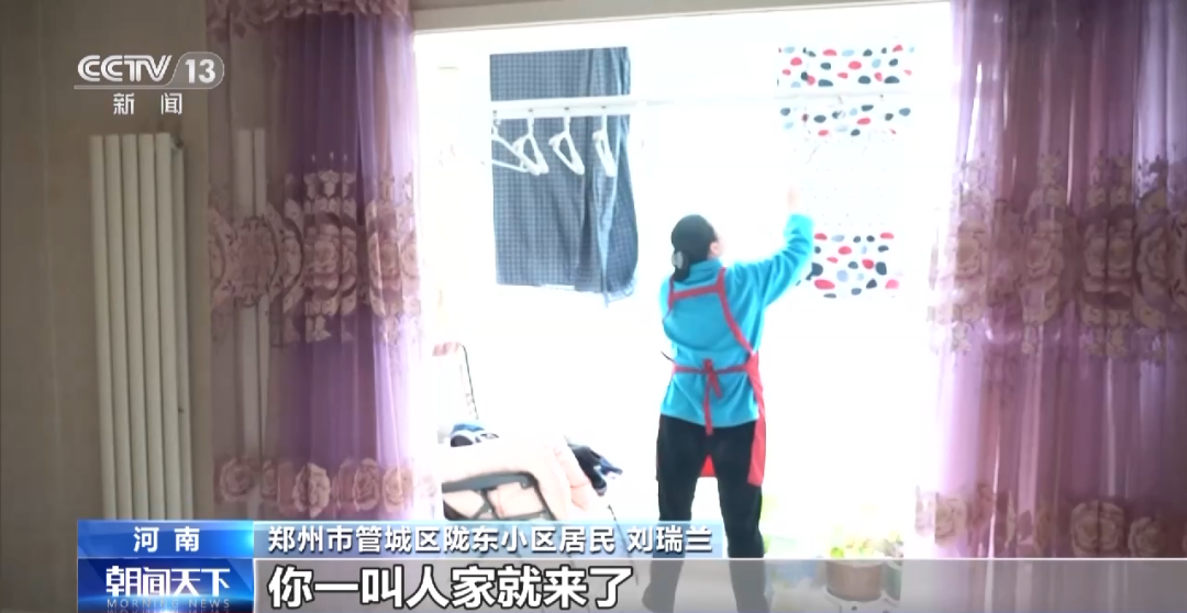 郑州市管城区陇东小区居民 刘瑞兰:现在我们慢慢年龄大了,孩子又不在身边,这些家务事你一叫人家就来了,真的像自己的孩子一样。