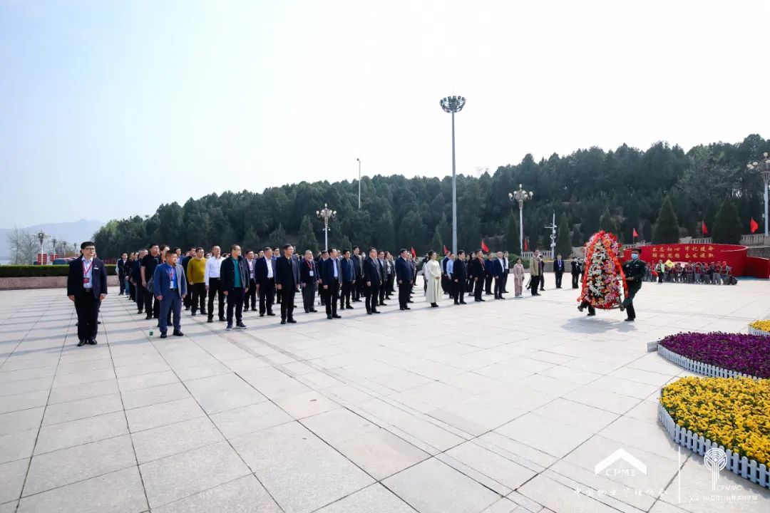 部分理事代表在纪念馆广场前整齐列队,集体瞻仰五大书记铜像,举行了隆重的向伟人敬献花篮仪式和重温入党誓词仪式。
