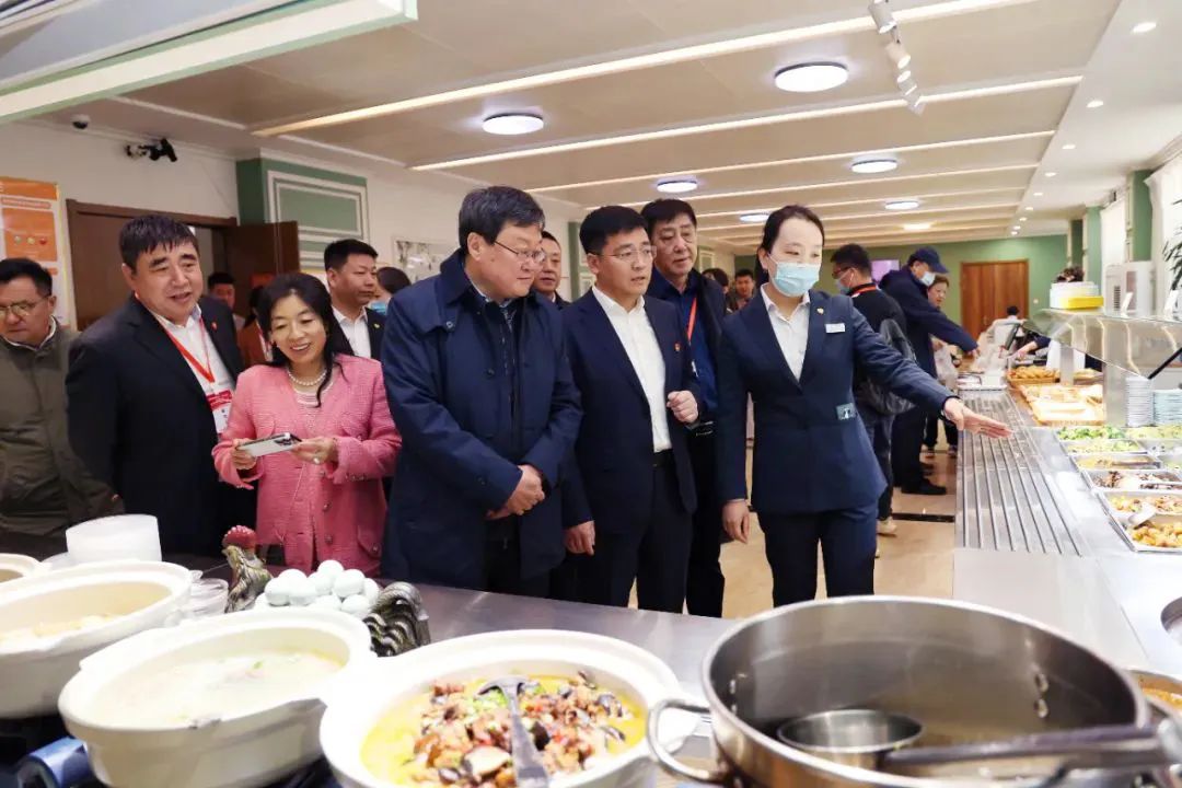 与会代表调研了一爱城市服务的群力新城小区以及“一爱优选”商超、一爱餐饮业主餐厅,图为一爱餐饮业主餐厅