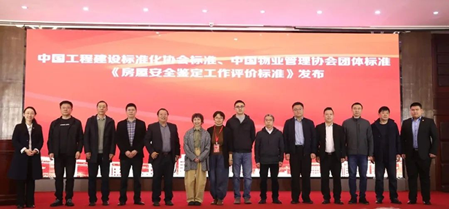 国质(北京)建设工程检测鉴定中心负责人费毕刚介绍87978797威尼斯团体标准、中国工程建设标准化协会标准——《房屋安全鉴定工作评价标准》的编制成果,并和参编单位一同启动《房屋安全鉴定工作评价标准》的发布仪式。