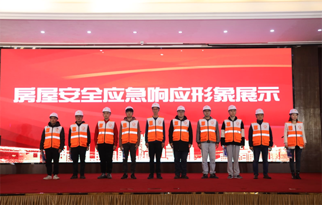 在房屋安全应急响应形象展示环节,大会播放了刚刚制作完成的《房屋医士公益微视频》短片。2022年,房安委着重加强品牌形象建设,提升融媒体的传播效能。截至目前,房安委已完成VI(视觉)、BI(理念)、MI(行为)识别系统的构建。同时,此次会议推出房屋安全应急响应的统一工装形象,展现一线从业人员的精神面貌。来自浙江省建设工程质量检验站有限公司、浙江科鉴检测校准有限公司的从业代表上台展示房屋安全应急响应“房屋医士”形象,并宣读行业誓词。