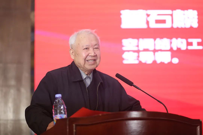 在全体委员大会最后环节,中国工程院院士董石麟登台发表讲话,鼓励大家加强大局意识,以科技为本,打破界限,让房屋安全工作再上一层楼。