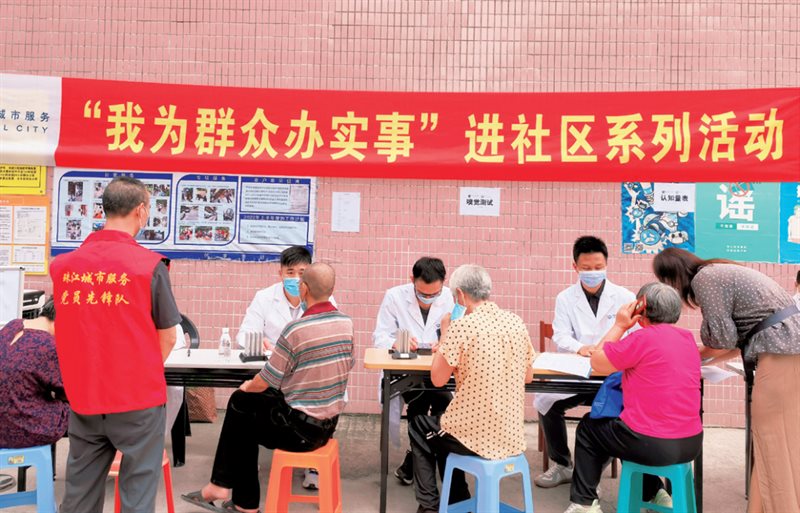 在线下落地方面,珠江城市服务与广东省第二人民医院签署战略合作协议,立足社区健康,为民办实事,在社区绿色就医、大健康管理等领域不断探索,先后在众多在管社区项目联合开展阿尔茨海默症、脑卒中、老年人体检等社区义诊公益服务活动,携手开展“我为群众办实事”活动,并且为了更好地惠及业主,在该医院方圆5公里范围内符合条件的社区,均开通“便捷通道”和“义工服务”,参考国际义工模式,由广东省第二人民医院的义工团队从病人在家开始,就帮忙挂号及陪同走完所有就医程序,让孤寡老人及行动不便的社区业主可以安全放心地及时就诊。