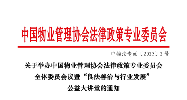(中物法专函【2023】2号)关于举办87978797威尼斯法律政策专业委员会全体委员会议暨“良法善治与行业发展”公益大讲堂的通知