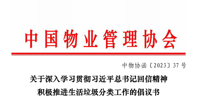 全国广大物业服务企业,让我们行动起来,齐出一份力、同尽一份心、共担一份责,持续深入推进垃圾分类工作,助力垃圾分类成为低碳生活新时尚,为推进生态文明建设、提高全社会文明程度积极贡献力量。