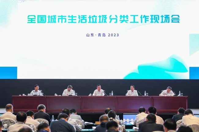 5月23日,住房和城乡建设部在山东省青岛市召开全国城市生活垃圾分类工作现场会。会议深入学习贯彻习近平总书记5月21日给上海市虹口区嘉兴路街道垃圾分类志愿者们的回信精神和关于垃圾分类的系列重要论述,认真落实党的二十大精神和党中央、国务院决策部署,总结工作成效,交流推广地方经验做法,启动首届全国城市生活垃圾分类宣传周活动,部署持续深入推进垃圾分类工作,不断提升群众文明素养,推动形成绿色发展和绿色生活方式。住房和城乡建设部党组书记、部长倪虹出席会议并讲话。山东省人民政府省长周乃翔出席会议并致辞。住房和城乡建设部副部长秦海翔主持会议。山东省委副书记、青岛市委书记陆治原,山东省政府副省长范波,青岛市人民政府市长赵豪志参加会议。