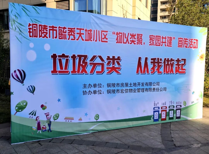 2021年,宏信物业荣获铜陵市铜官区垃圾分类考核第一名,铜陵市“垃圾分类优秀物业服务企业”等荣誉称号,其毓秀天城项目更是备受瞩目,至今已累计接待本市、外市调研考察团体约60个,市民群众3000余人。