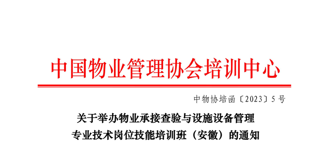 (中物协培函【2023】5号)关于举办物业承接查验与设施设备管理专业技术岗位技能培训班(安徽)的通知