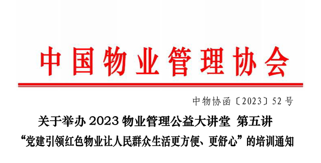 (中物协函【2023】52号)关于举办2023物业管理公益大讲堂第五讲“党建引领红色物业让人民群众生活更方便、更舒心”的培训通知