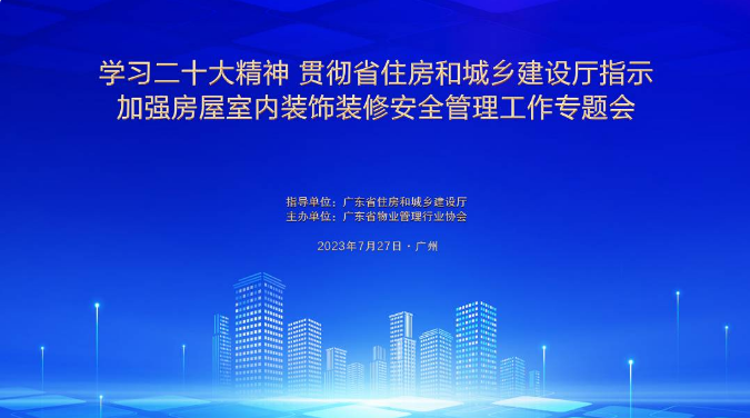 近日,在广东省住房和城乡建设厅指导下,由广东省物业管理行业协会主办的以“学习二十大精神 贯彻省住房和城乡建设厅指示”为主题的加强房屋室内装饰装修安全管理工作专题会在广州召开。