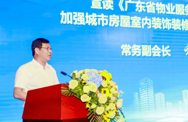 广东省物业管理行业协会副会长李卓章宣读了《广东省物业管理行业进一步加强城市房屋室内装饰装修安全管理倡议书》。
