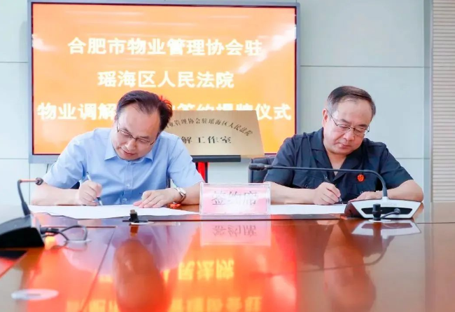 不久前,一场签约仪式在瑶海法院举行,合肥市物业管理协会驻瑶海法院物业调解工作室宣告成立。工作室成立后,协会和法院可实现无缝对接、高效联动,把诉讼与非诉讼纠纷解决机制有效衔接起来,共同推动物业服务合同矛盾纠纷多元化解。此举是合肥法院探索物业纠纷多部门联动、推进源头治理的重要举措之一,进一步减轻群众物业纠纷诉讼成本,提升物业纠纷化解质效。