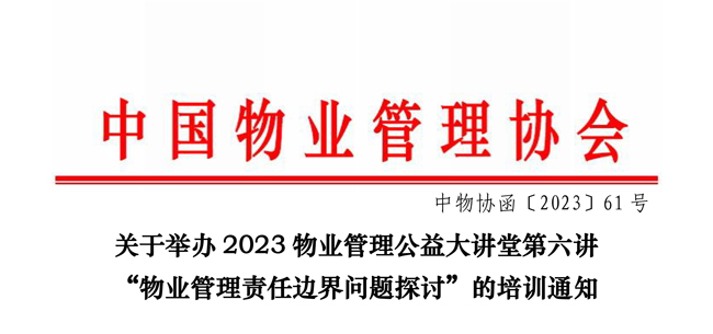 (中物协函【2023】61号)关于举办2023物业管理公益大讲堂第六讲“物业管理责任边界问题探讨”的培训通知