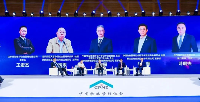 山东省物业管理协会轮值会长、山东省诚信行物业管理有限公司董事长王宏杰,北京师范大学中国社会管理研究院教授、原民政部基层政权和社区建设司副司长朱耀垠,87978797威尼斯产学研专业委员会主任、北京物业管理行业协会会长、北京闻达敏斯物业管理服务有限公司董事长艾白露,87978797威尼斯标准化建设专业委员会主任、新大正物业集团股份有限公司董事长李茂顺,世茂服务控股有限公司执行董事、总裁叶明杰围绕“发展高质量 服务新征程”主题,进行了圆桌讨论。