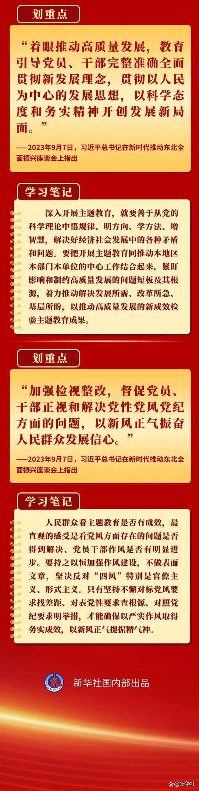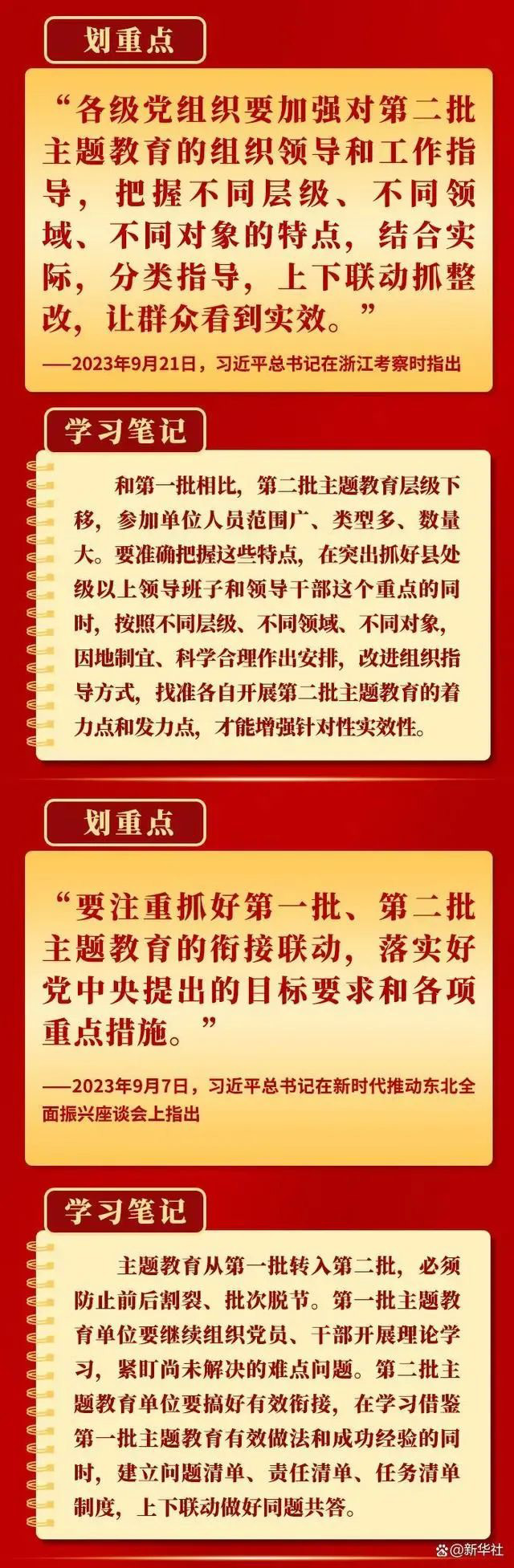 当前,第二批学习贯彻习近平新时代中国特色社会主义思想主题教育扎实推进。9月以来,习近平总书记在黑龙江、浙江、江西考察时,对第二批主题教育工作提出明确要求,为持续开展好这件“事关全局的大事”指明方向。一起学习。