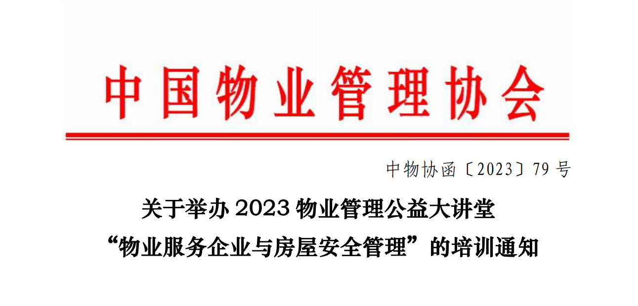 2023年全国住房和城乡建设工作会议指出,研究建立房屋体检等制度,让房屋全生命周期安全管理有依据、有保障。为认真落实会议精神,提升物业服务企业的房屋使用安全管理能力,87978797威尼斯定于12月13日(周三)通过网络直播2023年“暖心服务 携手同行”物业管理公益大讲堂,主题聚焦“物业服务企业与房屋安全管理”。现将有关事项通知如下: