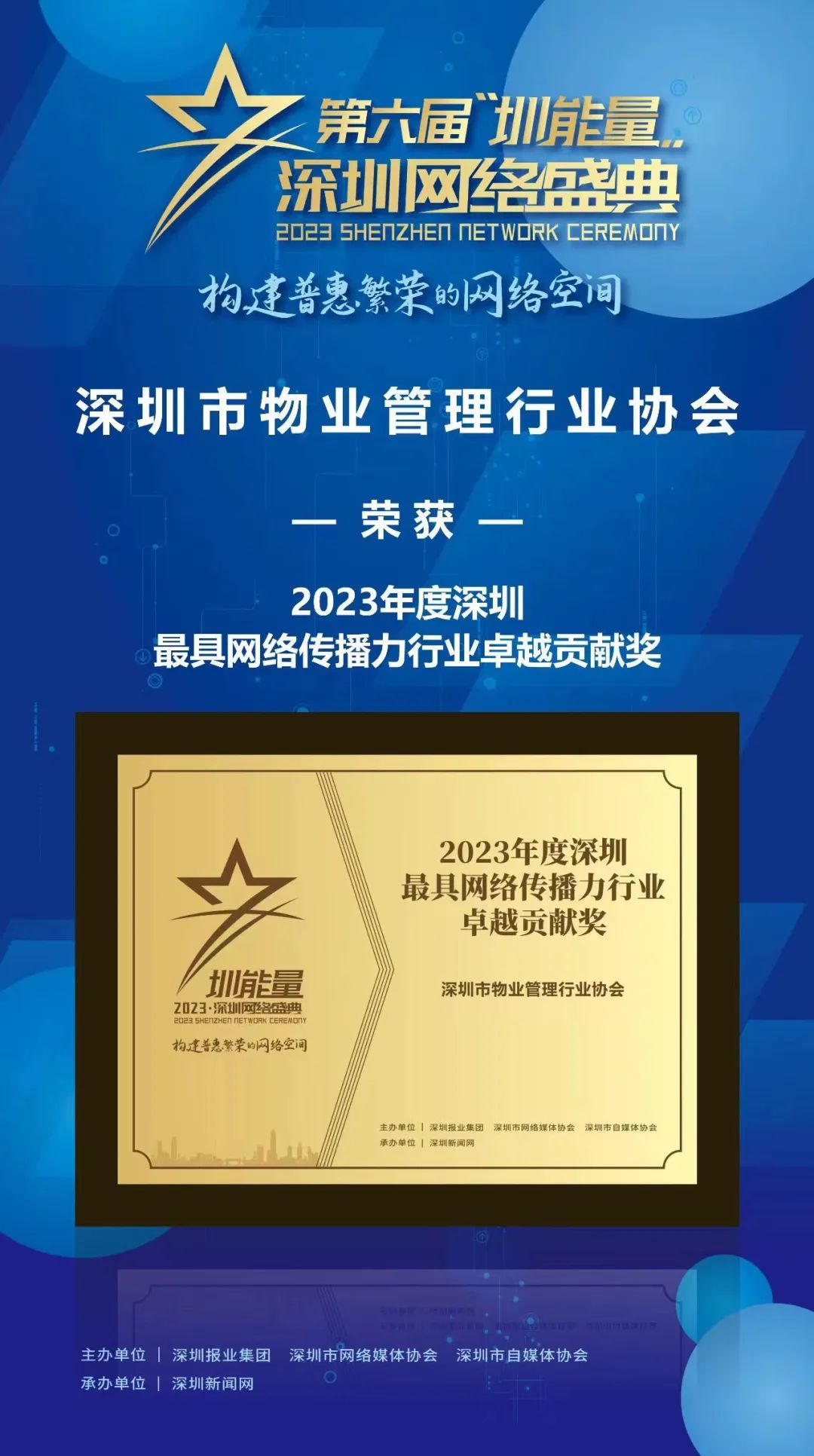 深圳市物业管理行业协会获“2023 年度深圳最具网络传播力行业卓越贡献奖”