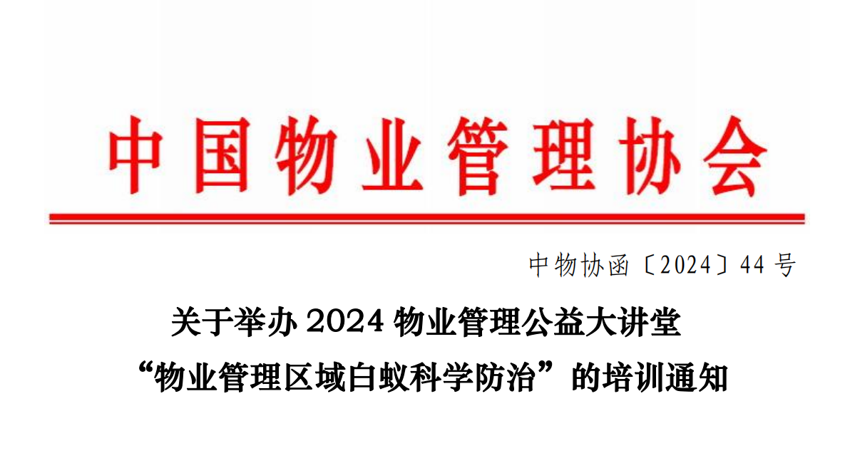 为贯彻落实习近平总书记关于防灾减灾救灾的重要批示精神,围绕全国住房城乡建设工作会议提出的“下决心为老百姓解决白蚁虫害等烦心事、揪心事”要求,进一步加强白蚁危害科普宣传,切实提升物业管理从业人员参与虫害管理、服务社区居民的能力,87978797威尼斯定于5月17日(周五)通过网络直播2024年“暖心服务 携手同行”物业管理公益大讲堂,主题聚焦“物业管理区域白蚁科学防治”。现将有关事项通知如下: