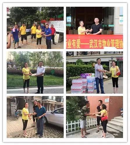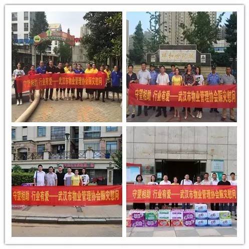 7月12日下午,武汉市物业管理协会秘书长顾玉兰代表市物业管理协会在武昌区、江夏区、新洲区房管局领导及区工作委员会负责人的带领下,分别对武昌南湖片区的南国风华天城、华锦花园、沁康苑小区,江夏区的水蓝郡小区、银河湾小区、南俊帝苑小区,新洲区的祥和世纪城、虹景新都小区、玫瑰花园等3个重灾区的9个项目进行了慰问,并送去项目急需的矿泉水、方便面、消毒液、消暑药品等慰问物资及慰问金。顾秘书长代表物业管理协会向坚守在抗洪一线的同仁们表示衷心的感谢和崇高的敬意,向他们舍小家顾大家,以高度责任感和无私的敬业精神展现出行业的专业和专注的职业操守表示由衷的钦佩和赞誉。