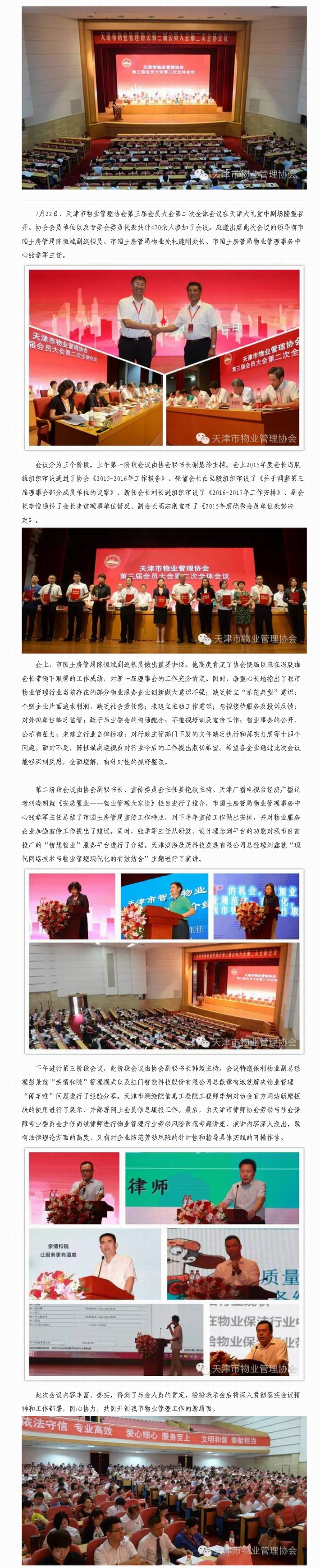 天津市物业管理协会召开第三届会员大会第二次全体会议