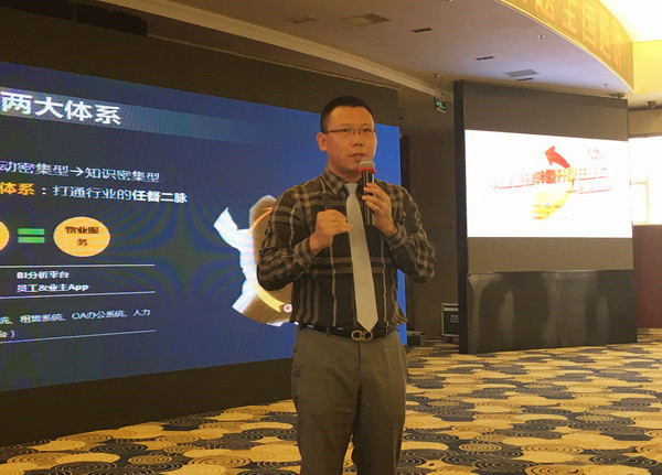龙湖集团物业管理部总经理王建辉以“龙湖物业转型升级之路”为题,进行了精彩的讲演。从“善待你一生”的企业理念、“坚守匠心”的服务品质、“满意+惊喜+幽默+乐趣”的服务文化方面,分享了「看得见」的龙湖式幸福。
