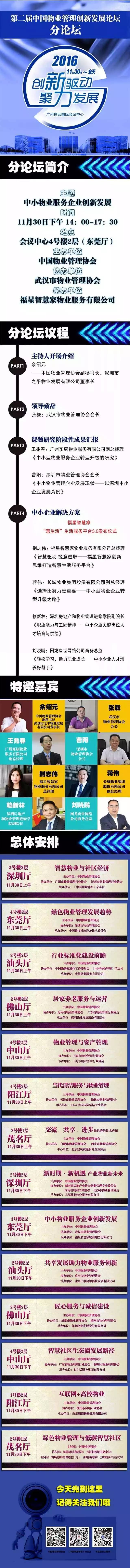 第二届中国物业管理创新发展论坛分论坛—中小物业服务企业创新发展,将于11月30日14:00-17:00在白云国际会议中心4号楼2层(东莞厅)如期举行!