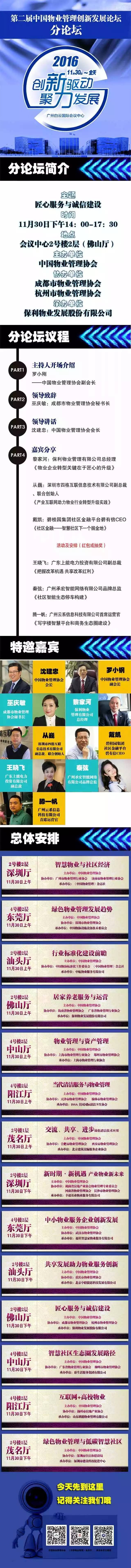 第二届中国物业管理创新发展论坛分论坛—匠心服务与诚信建设,将于11月30日14:00-17:00在白云国际会议中心2号楼2层(佛山厅)如期举行!